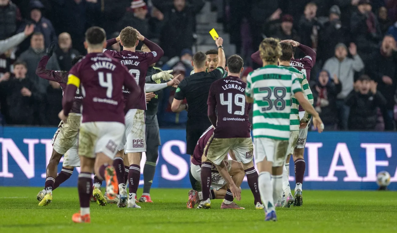 The match itself was already finely balanced before the red card changed everything. Celtic arrived in Edinburgh just days after a European fixture, short of options, yet still managed to score twice away from home against the league leaders. They were protecting a narrow lead when the game turned on one moment.